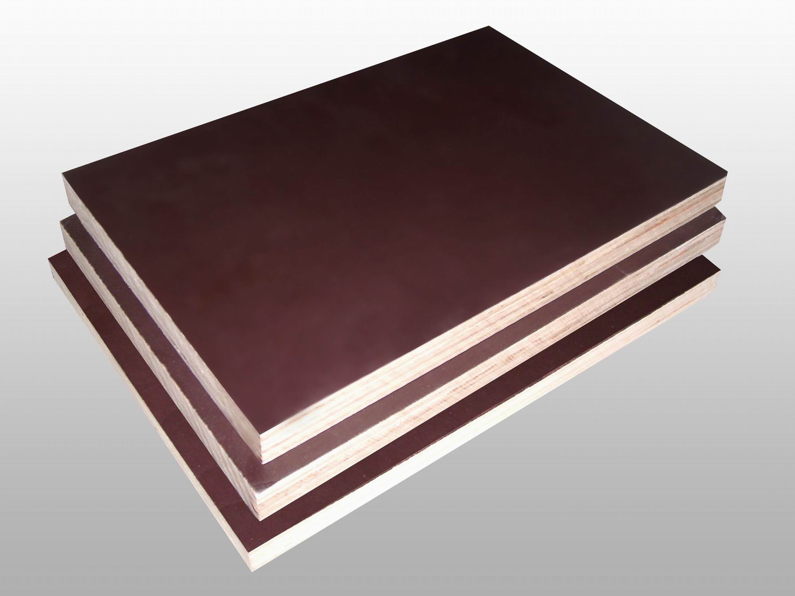 BWP phenol formaldehyde resin bonded with 120 gsm brick red or black phenolic film. Higher 180 gsm film can be used if specifically required. This can also be supplied with a pre finished backer lamination for direct use in cupboard interior, door back etc.